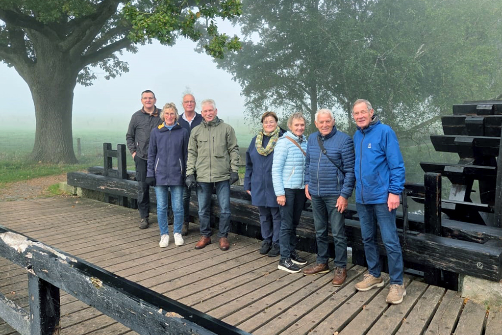 Op weg Bentelo voor de fietstocht zie ik bijna geen hand voor ogen door de mist. We starten onze tocht, 35 kilometer lang, die door Agonda Kemerink is uitgezet, bij de kerk in Bentelo. We zijn met negen personen.